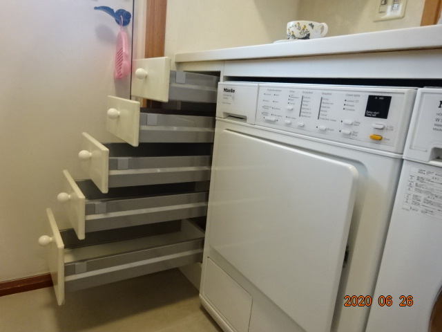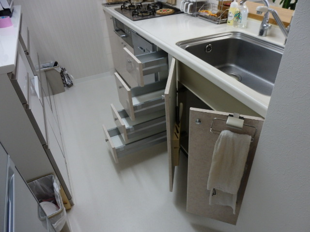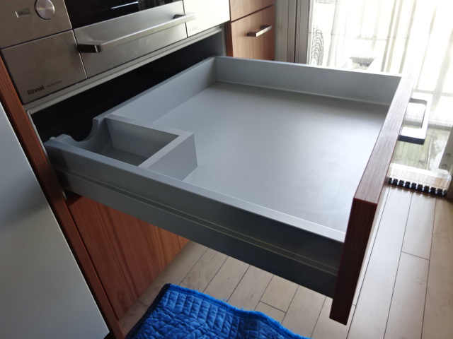 ![]() 施工後:引出レールをスライド仕様にして奥まで引き出せるようになりました。 |
