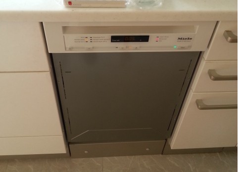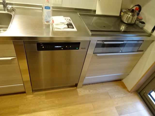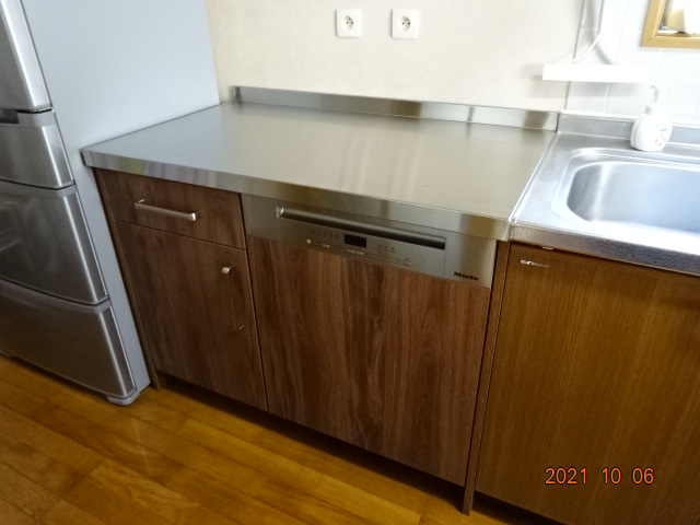 | 食洗機設置スペースの両サイド隙間を特注製作ステンレスで塞いで仕上げ | ||