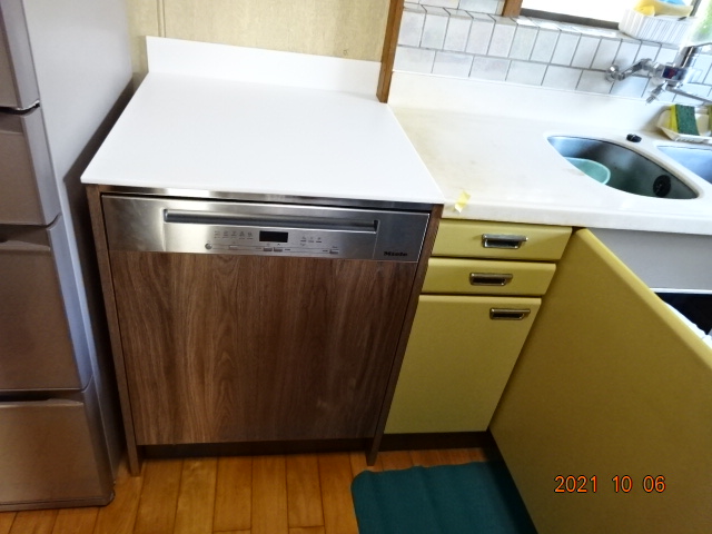 | 既存キャビネットスペースに同幅の食洗機をビルトイン設置 | ||