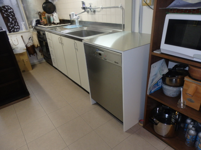 | キッチンの高さに合わせてステンレス拡張した単独置き設置例 | ||