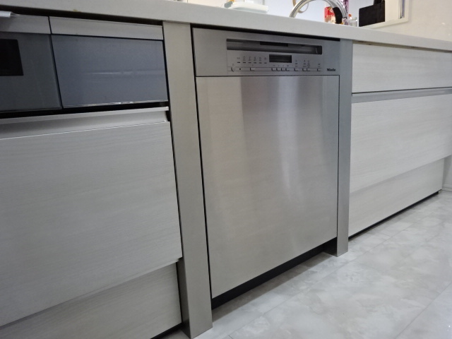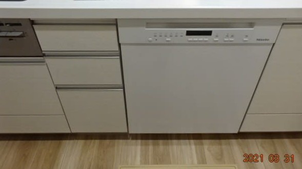 製品 ドイツのブランドメーカー Miele(ミーレ) ドアパネルで統一出来ます。 開閉式なので容量もたっぷり入り、 機械音も静かです。 |