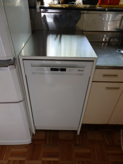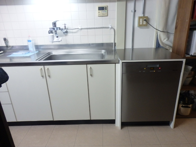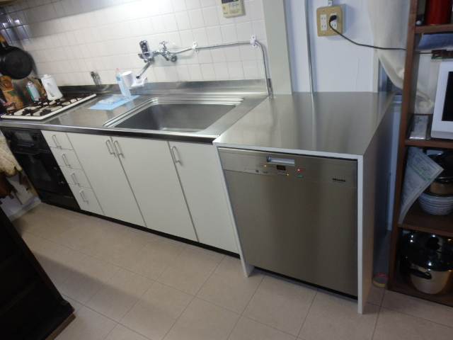 | 食洗機設置スペースの両サイド隙間を特注製作ステンレスで塞いで仕上げ | ||
